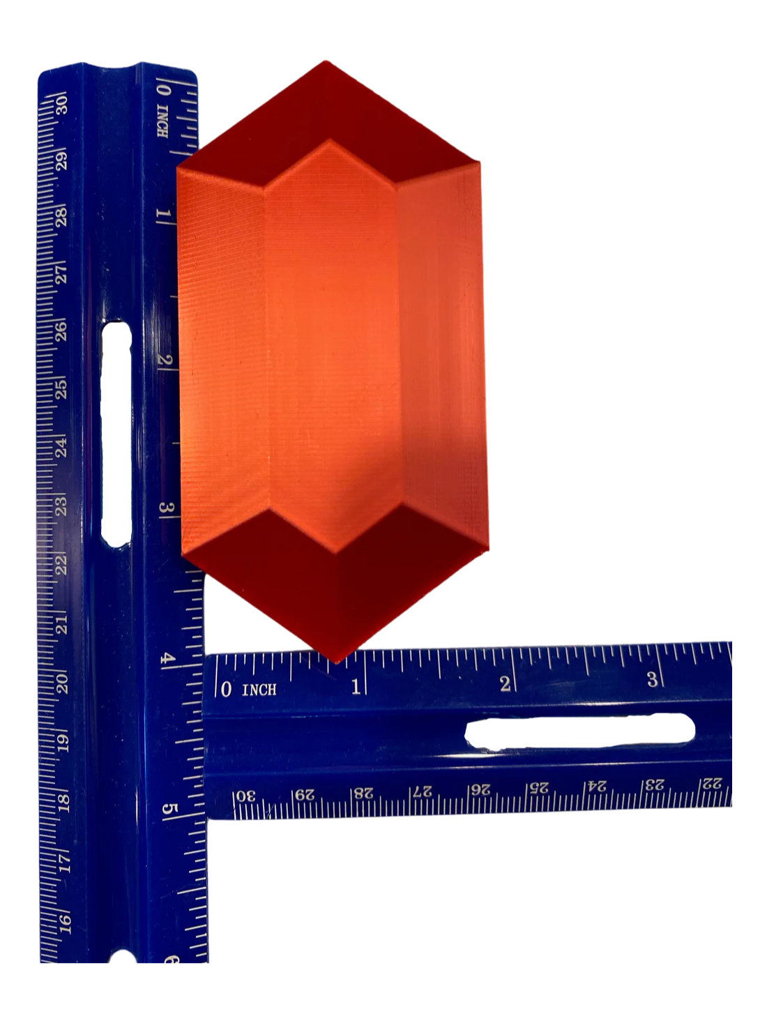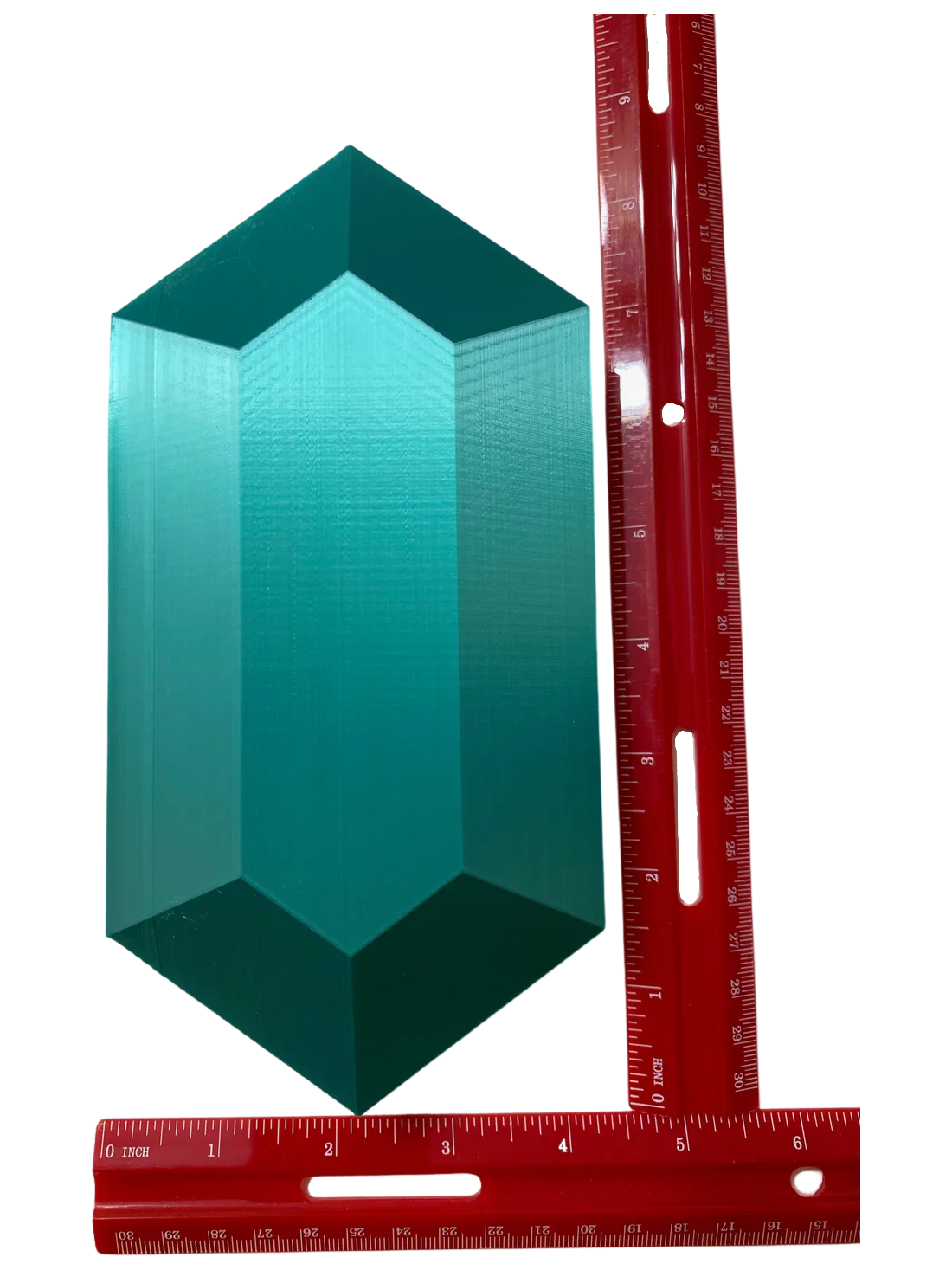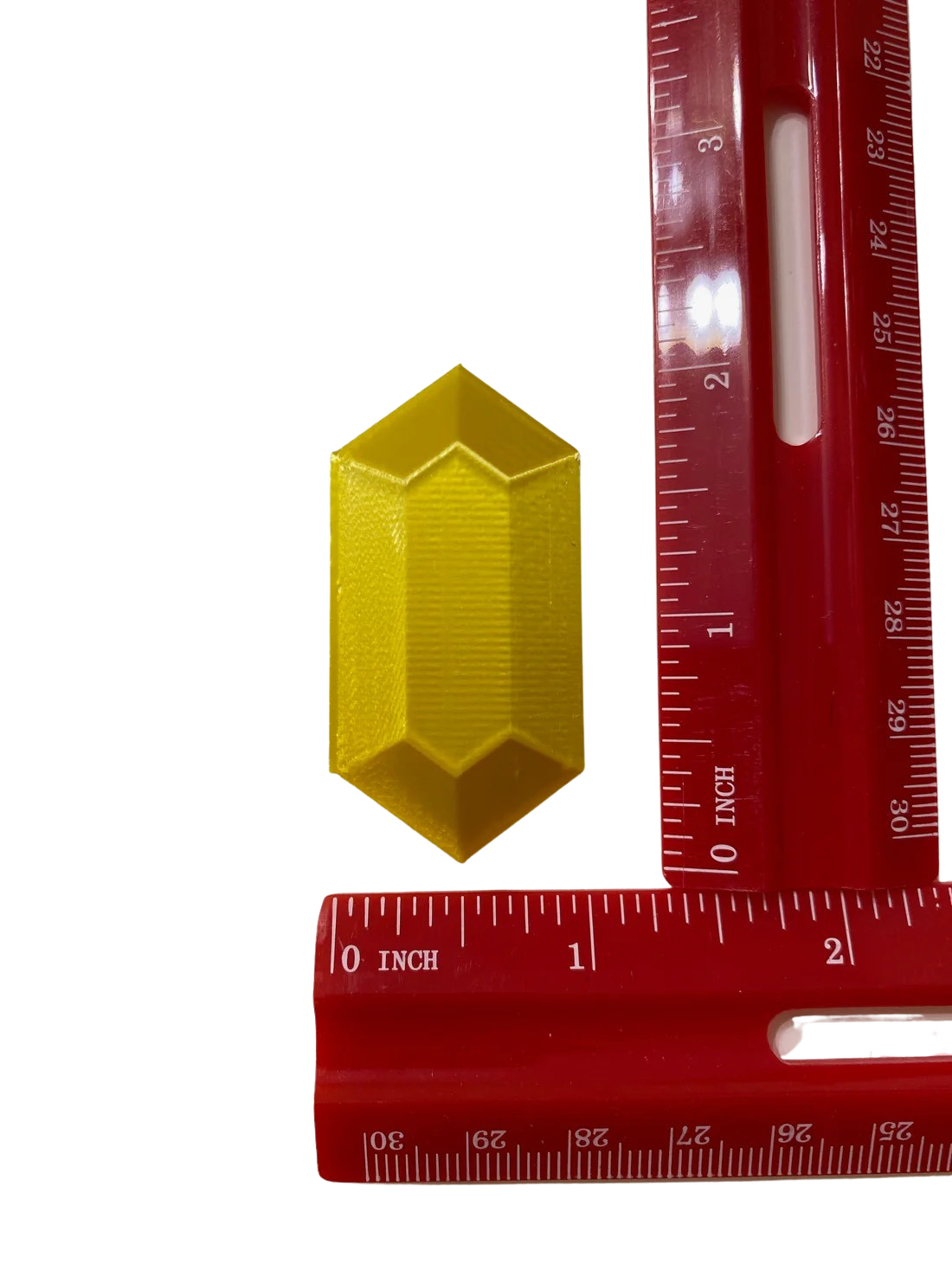 Rupees are also available in 3 sizes! Small rupees easily fit in your hand, up to massive rupees which are almost a half a pound! All rupees are 3D printed with shiny (or "silk") PLA plastic to give them a superb shine when held in the light. As with all 3D printed objects, this is made to order and may have slight imperfections as a part of the 3D printing process.